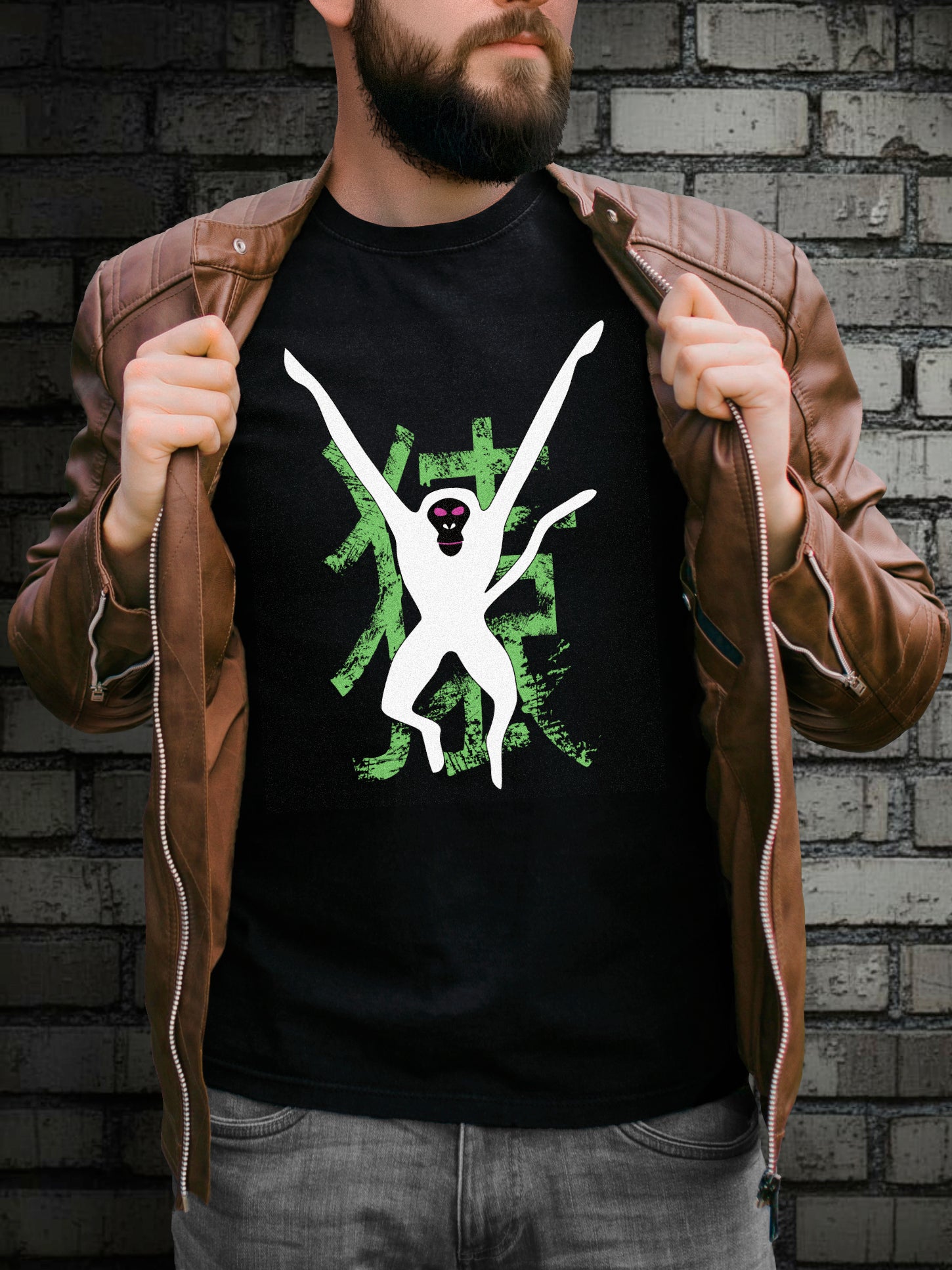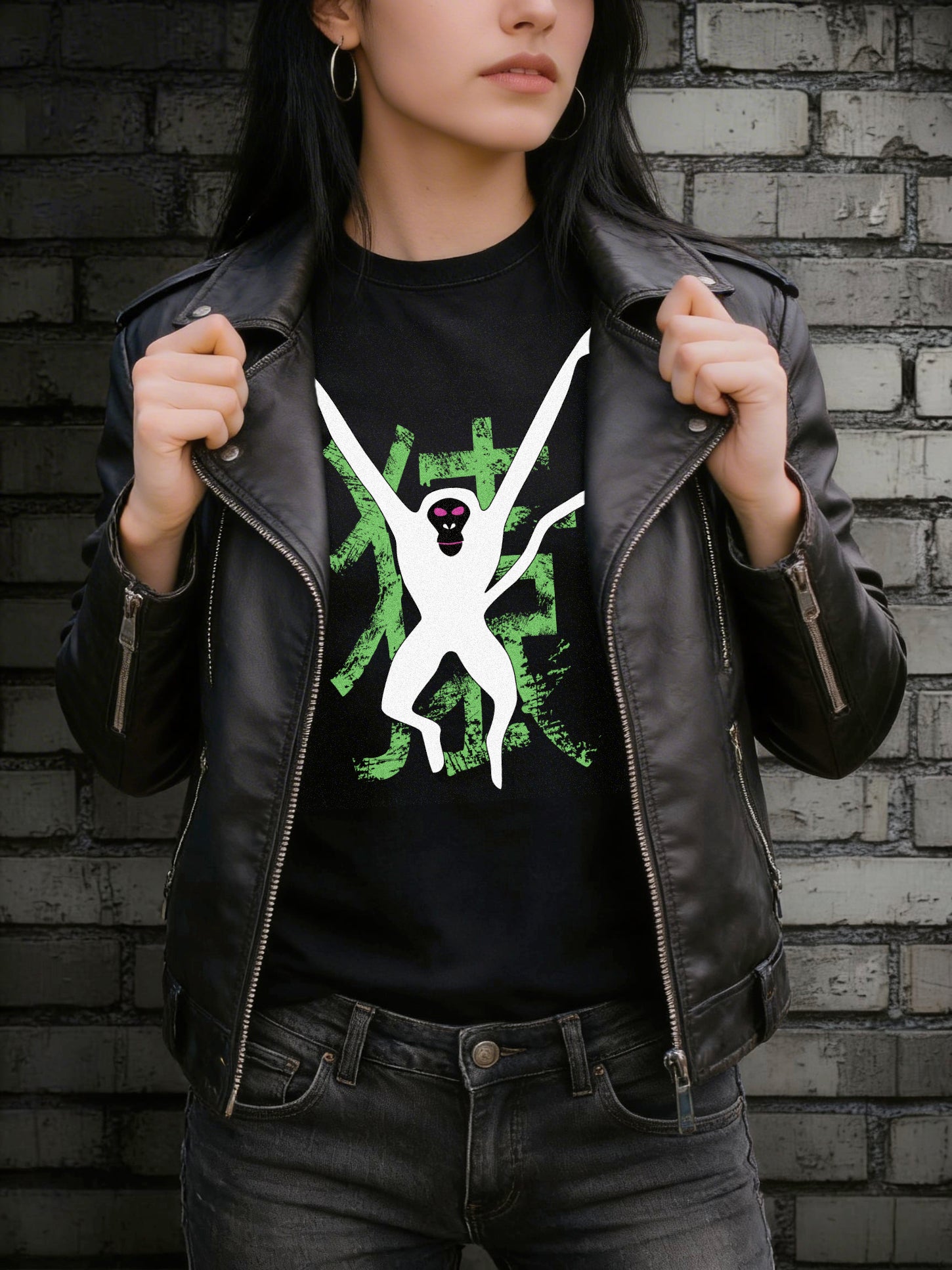 Available on a black regular-fit T-shirt